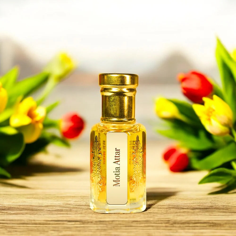 Immerse yourself in the timeless aroma of Motia Attar, an exquisite extract of fresh jasmine blossoms (Motia). This natural, alcohol-free attar captures the soft, sweet, and deeply floral notes of blooming jasmine — evoking feelings of peace, romance, and pure serenity.